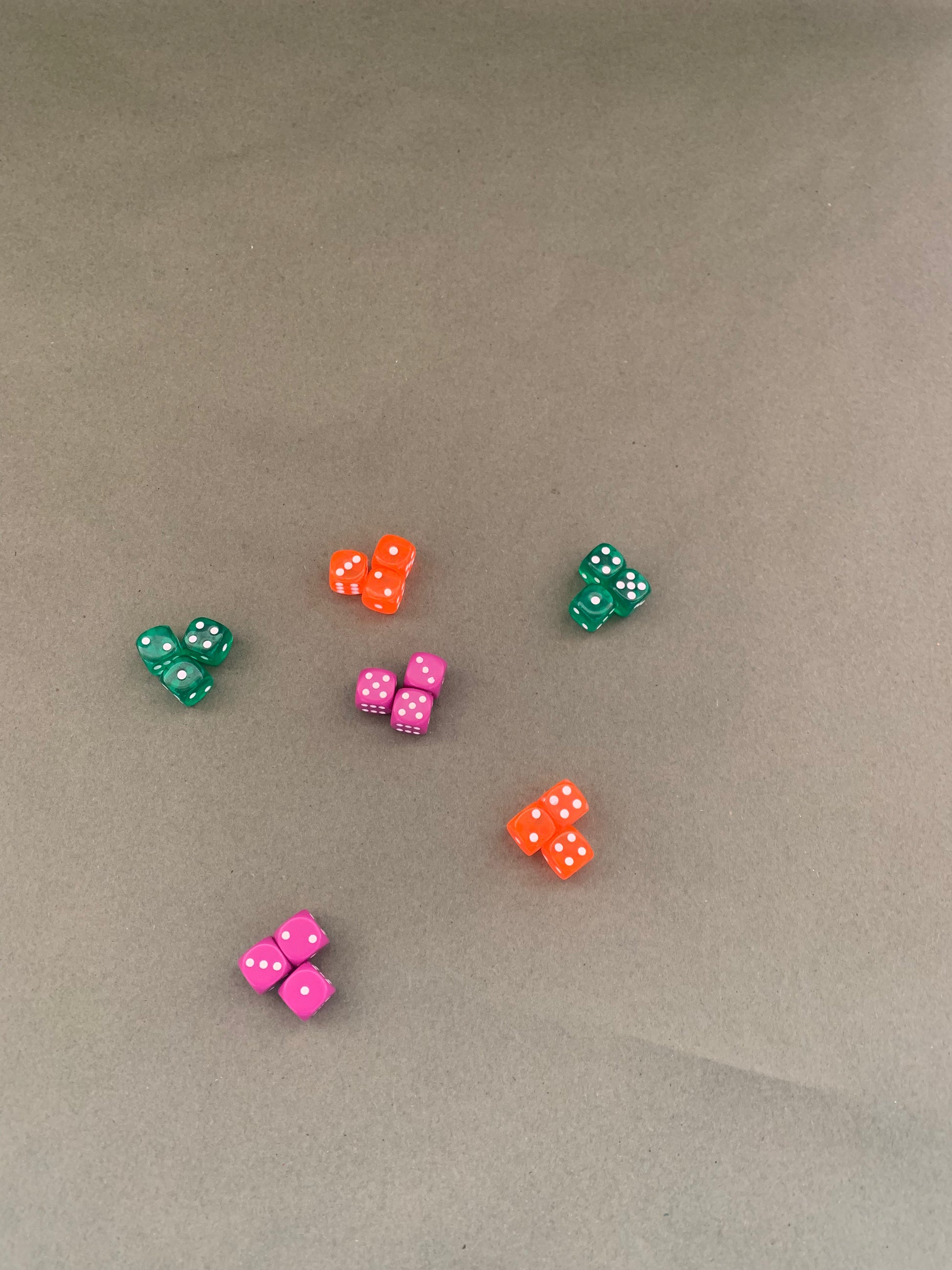 2 GREEN, 2 ORANGE, 2 PURPLE, WHITE, RED
